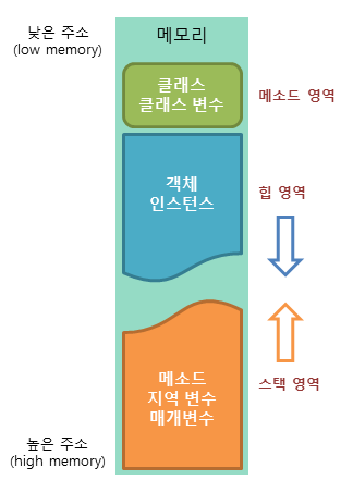 인스턴스가 생성되는 공간. 프로그램 실행 중 생성되는 인스턴스는 모두 이곳에 생성된다. 즉, 인스턴스 변수들이 생성되는 공간이다.