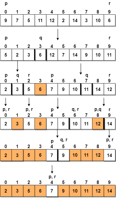 위의 과정을 재귀적으로 반복하면서, 부분 배열의 크기가 1로 충분히 작아질 때까지 반복한다. 일반적으로 퀵 소트는 재귀 호출을 통해 정렬을 수행하며, 원소의 개수가 적어질수록 더욱 효율적인 정렬이 이루어진다.