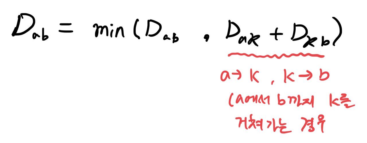 graph[a][b] = min(graph[a][b], graph[a][k]+graph[k][b])