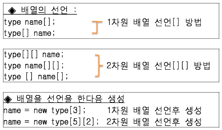 int arrays2[] = new int[]{10,11,12,13,14,15,16}; // 생성과 초기화