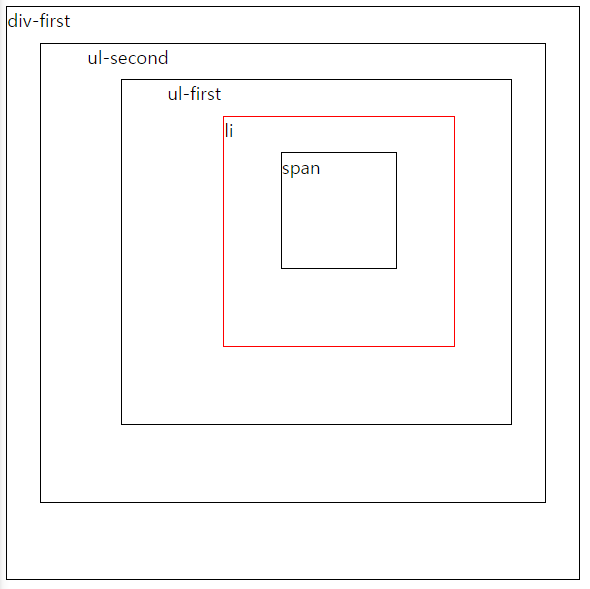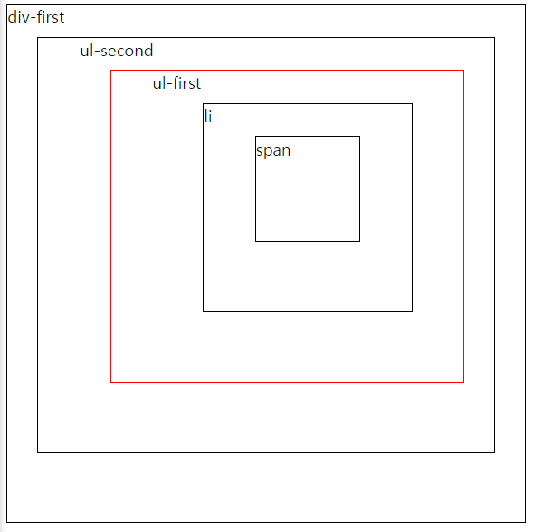 $("span").parentsUntil("div").css("border", "1px solid red");