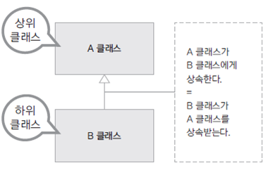 위 그림에서, 상위클래스(A)를래스를 parent class, base class, super class 라고 하고 하위에 있는 클래스(B)를 child class, derived class, subclass 라고 한다.