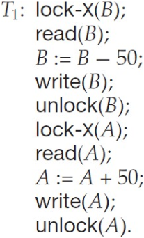 Lock(ing)은 트랜잭션이 접근하려는 데이터를 다른 트랜잭션이 접근하지 못하도록 잠그는(lock) 병행 제어 기법이다. lock에는 exclusive-lock과 shared-lock 이 있다. lock을 사용함으로써 여러 곳에서 동시다발적으로 들어오는 data transaction 명령을 실행 할 수 있다. 잠금을 허용할 수 없는 경우, 먼저 선점한 lock이 풀어줄 때 까지 기다린다.
