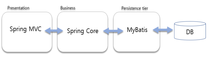 | mybatis,mybatis-spring-DB | spring core | spring MVC |